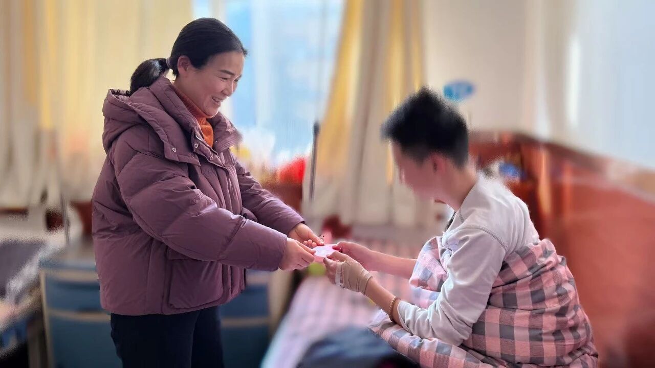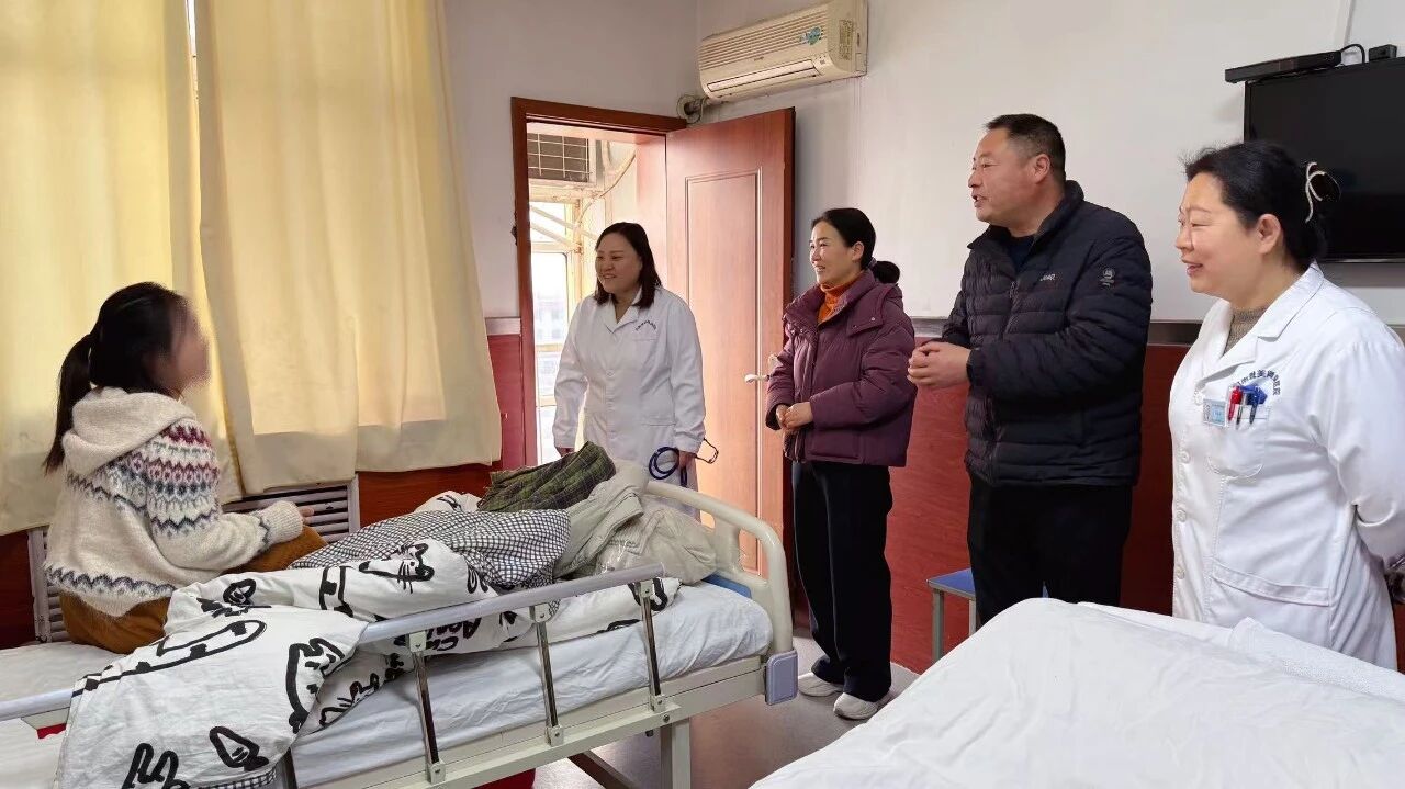 殷殷嘱托传关爱,句句关怀暖人心。“新年快乐,给您拜年了!祝您早日康复!”“身体恢复得怎么样?饮食还习惯吗?”一声声亲切的问候、一句句暖心的叮嘱,驱散了患者心中的乡愁与病痛的阴霾。医院领导与患者亲切交谈,详细询问他们的治疗进展、生活状况,为他们送去医院的关怀与温暖,鼓励患者树立战胜病魔的信心和勇气,积极配合治疗,争取早日康复。